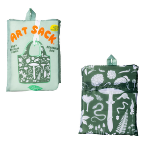 Schlep your sh*t, support artists, and hug a tree with our reusable Art Sacks®! These rad bags hold up to 50 lbs and fold into an interior pocket for easy grab-and-go.